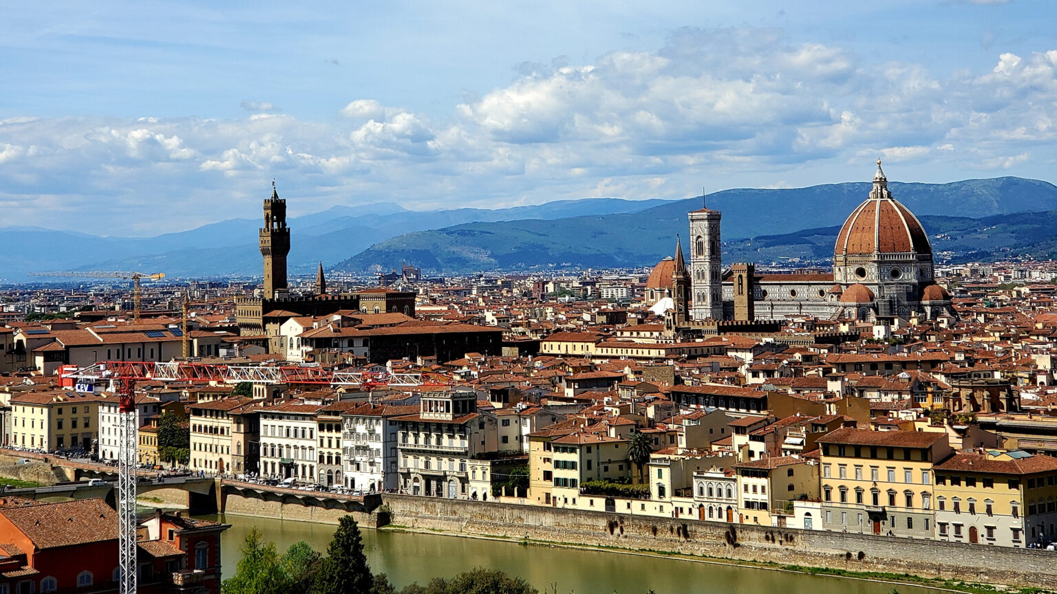 On voit le Dôme d’un peu partout dans la ville. La Piazza del Duomo est immanquable lors d’un séjour à Florence. Cœur névralgique de la ville, c’est là que tous les touristes se ruent pour admirer l’impressionnante Cathédrale Santa Maria del Fiore et sa célèbre coupole de 114 mètres de haut conçue par Brunelleschi. Sur la même place, vous pouvez aussi admirer le Campanile de Giotto et le Baptistère, un bâtiment octogonal datant du Moyen Âge.